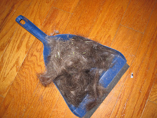 Some pics of the before and after... notice the small animal I was able to sweep up after the hair cut.